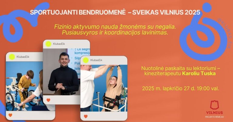 2025 m. lapkričio 27 d. vyko nuotolinė paskaita „Fizinio aktyvumo nauda žmonėms su negalia. Pusiausvyros ir koordinacijos lavinimas“. Lektorius kineziterapeutas Karolis Tuska pasidalino savo įžvalgomis,